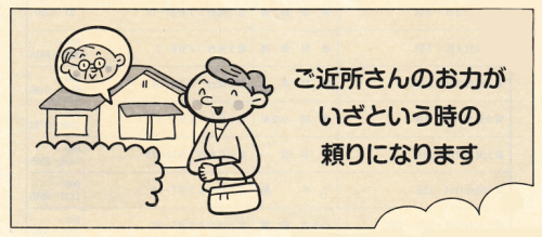 例えばご近所さんで・・・・新聞や郵便物が郵便受けに溜まっている・雨戸が何日も閉めっぱなしになっている・夜になっても電気がつかない・最近、姿を見かけない・この頃、体調が悪いようだこんなとき、心配になりますね。