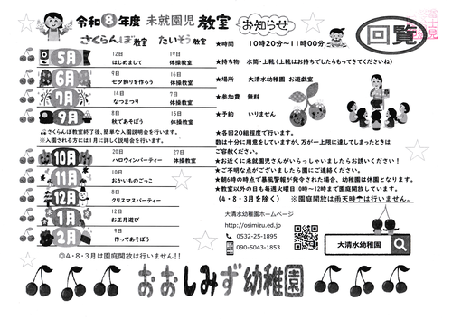 令和8年度 未就園児教室 お知らせ