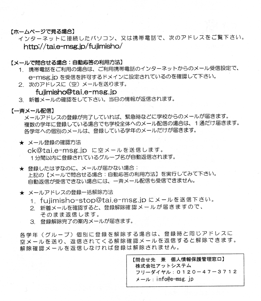 学校お知らせシステム eメッセージPro2ご利用案内