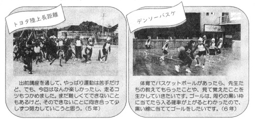 昨年度に引き続き、今年度も、トヨタ自動車陸上長距離部OBのかたとデンソーバスケットポール部OBのかたによる出前授業が5,6年生を対象に行われました。