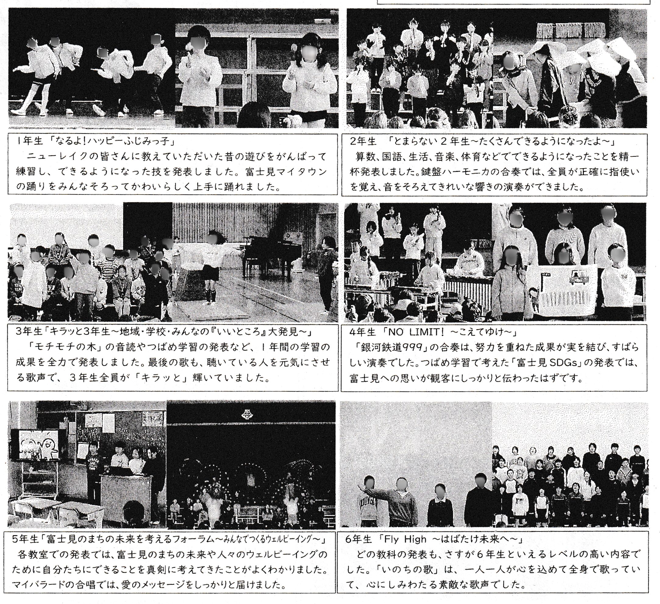 1月24日の富士見っ子発表会では、全校児童が1年間の学びの成果を堂々と披露しました。